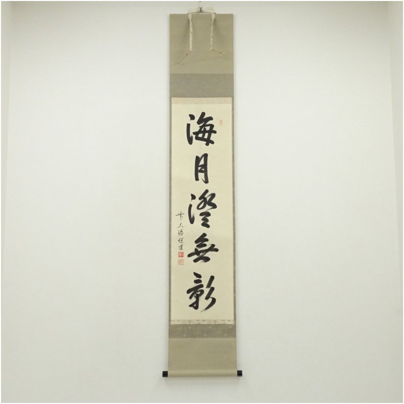 前大徳 高橋悦道筆 「海月燈無影」一行書 肉筆紙本掛軸(共箱) [13-250715c-036a]