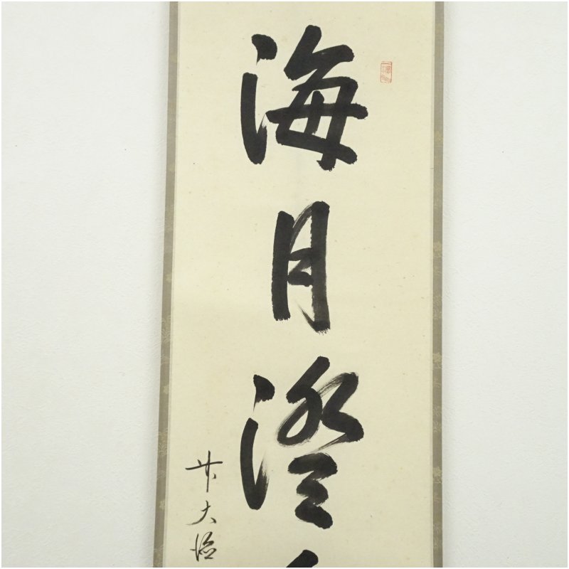 前大徳 高橋悦道筆 「海月燈無影」一行書 肉筆紙本掛軸(共箱)