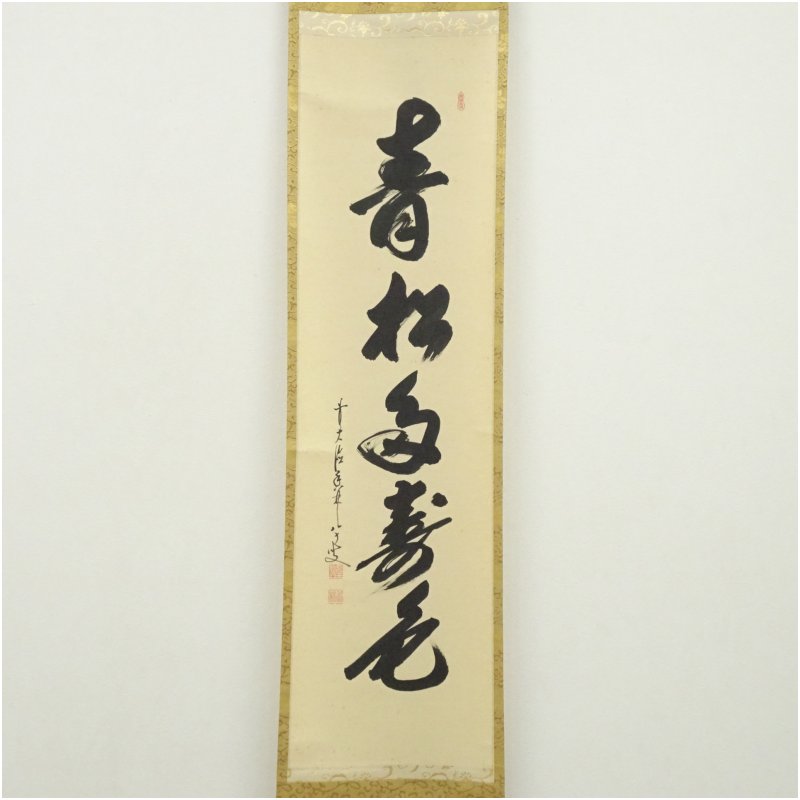 前大徳 大橋香林筆 「青松多寿色」一行書 肉筆紙本掛軸(共箱) [13-250715c-047a]