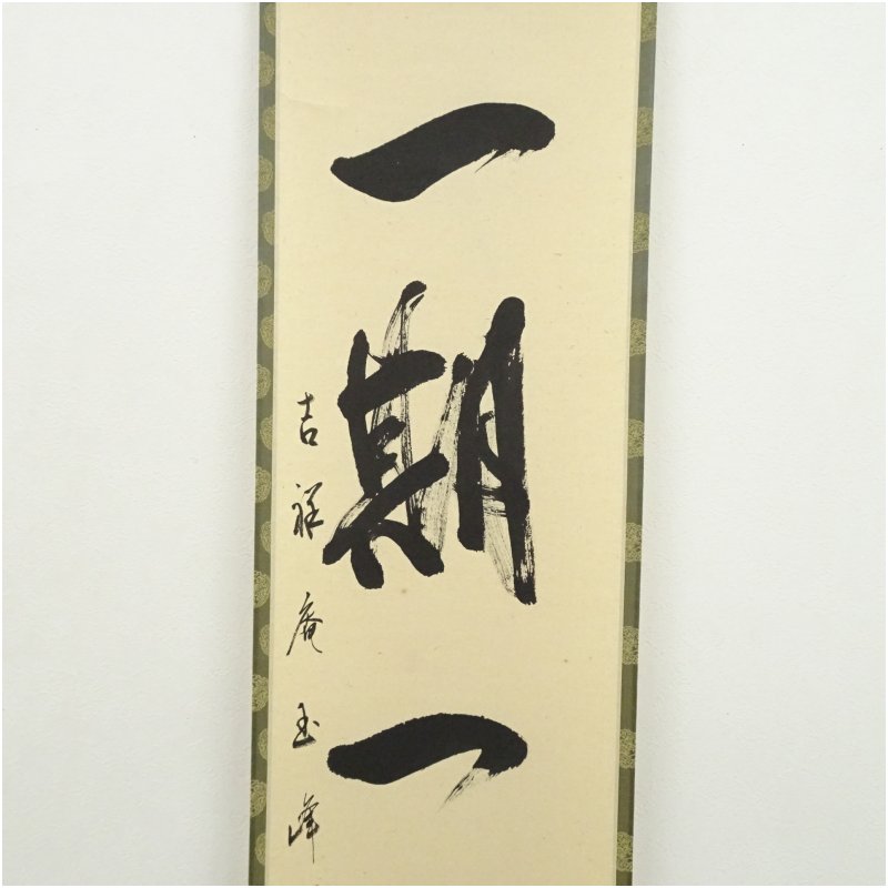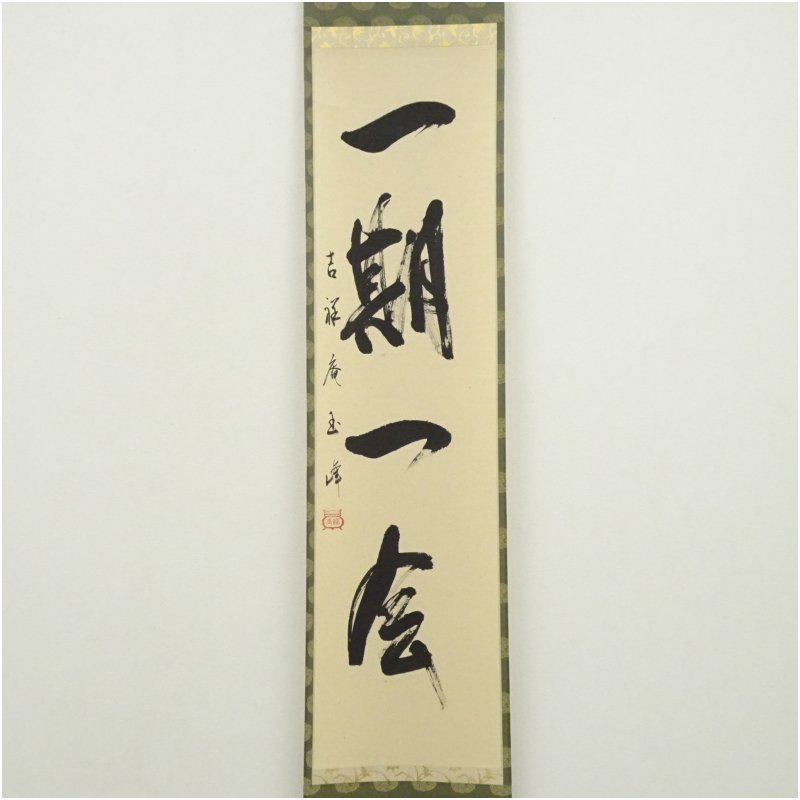 吉祥庵 玉峰筆 「一期一会」一行書 肉筆紙本掛軸(共箱)