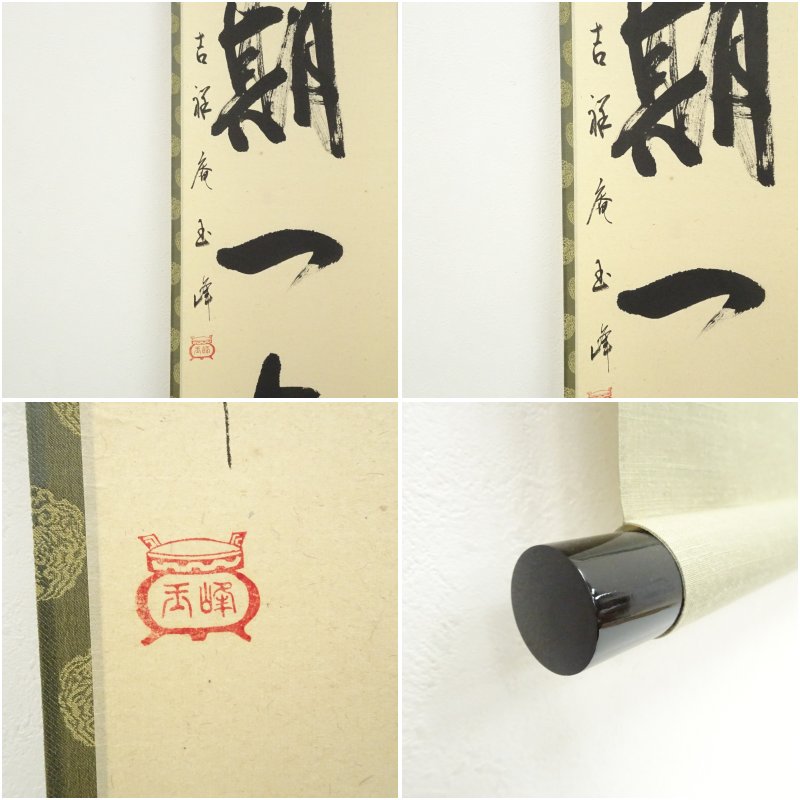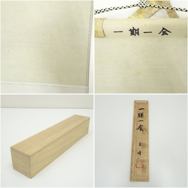 吉祥庵 玉峰筆 「一期一会」一行書 肉筆紙本掛軸(共箱) [13-250715c-052a]