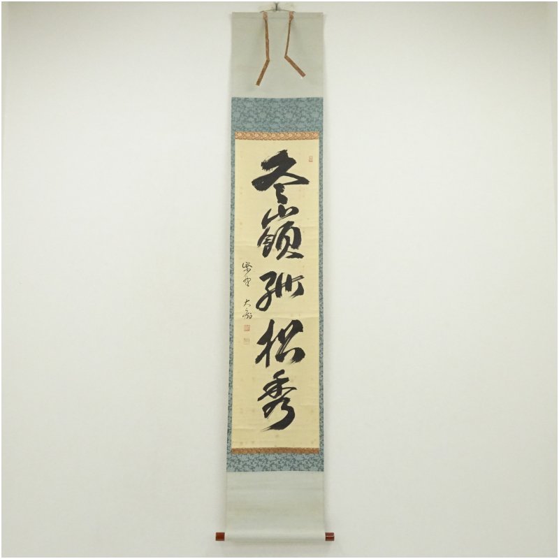 大徳寺 山口大痴(萬拙)筆 「冬嶺狐松秀」一行書 肉筆紙本掛軸(共箱) [13-250715c-053a]