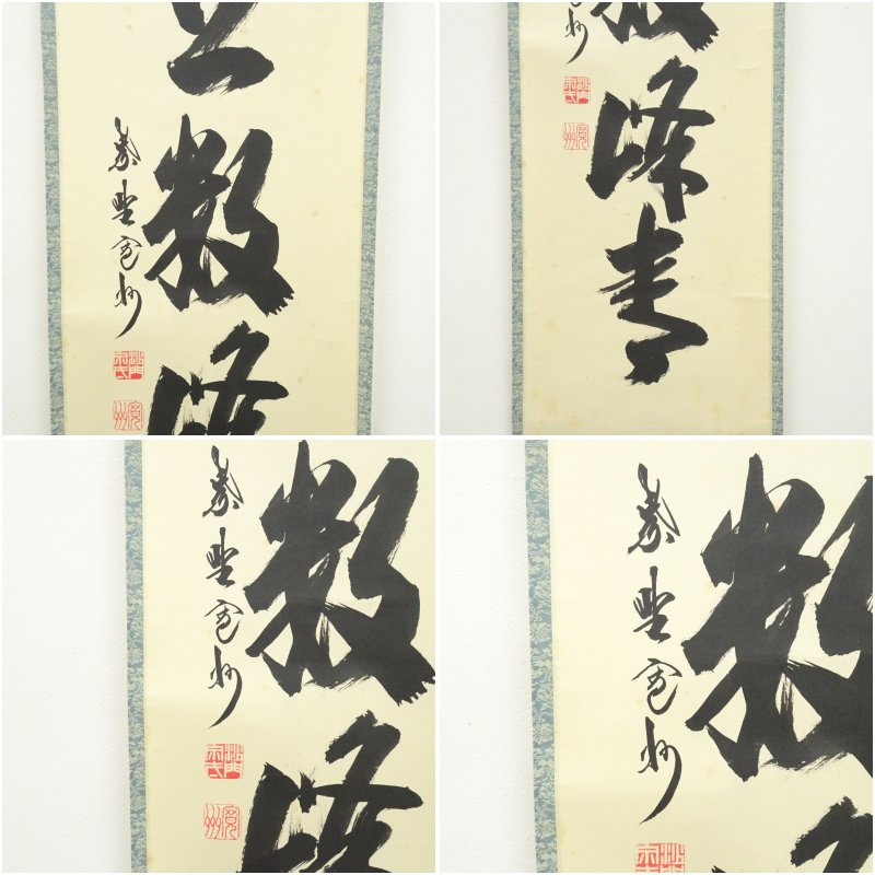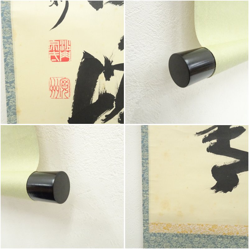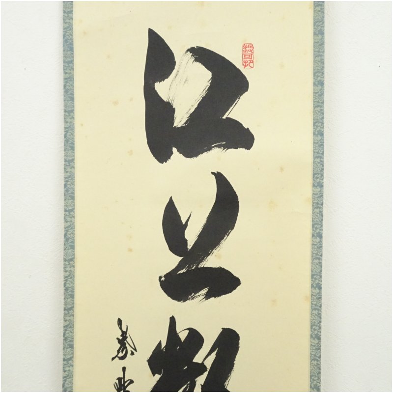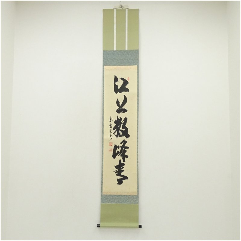 大徳寺 長谷川寛州筆 「江上数峰青」一行書 肉筆紙本掛軸(共箱)