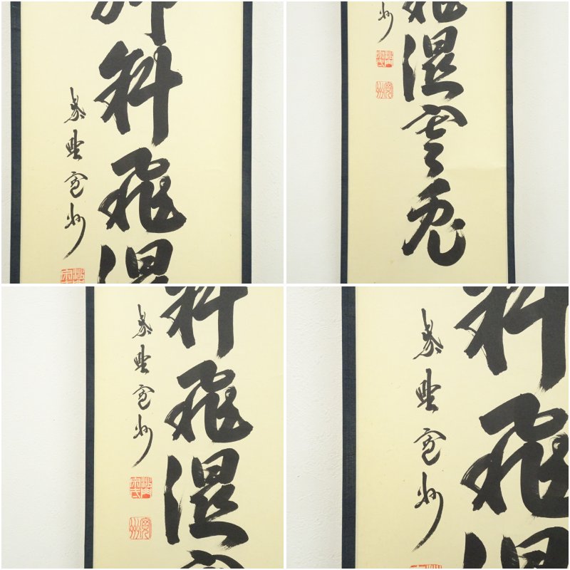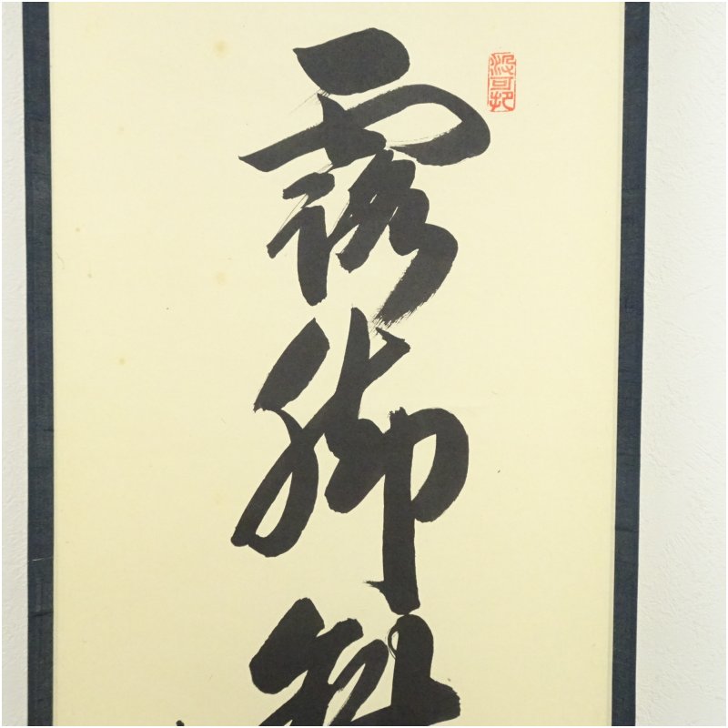 大徳寺 長谷川寛州筆 李賀詩「露脚斜飛湿寒兎」一行書 肉筆紙本掛軸(共箱) [13-250717c-001a]