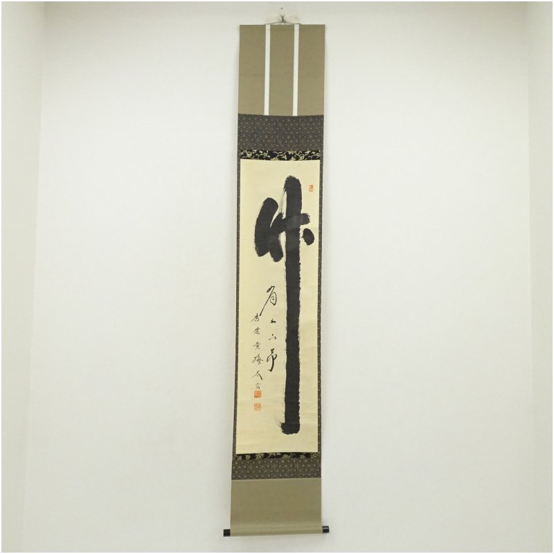 大徳寺 小林太玄筆 「竹有上下節」一行書 肉筆紙本掛軸(共箱) [13-250717c-003a]