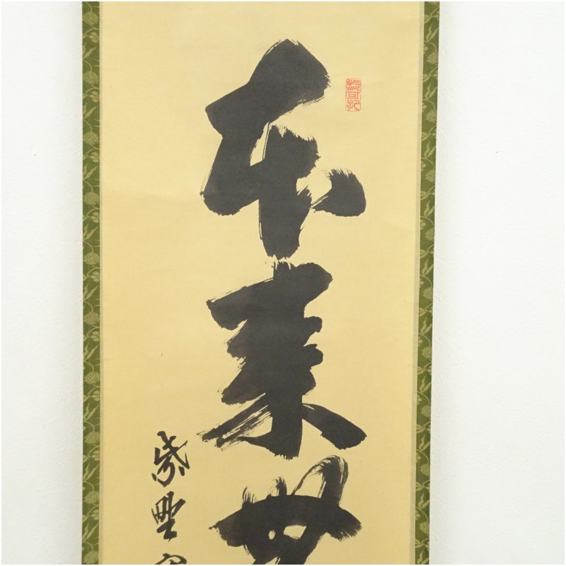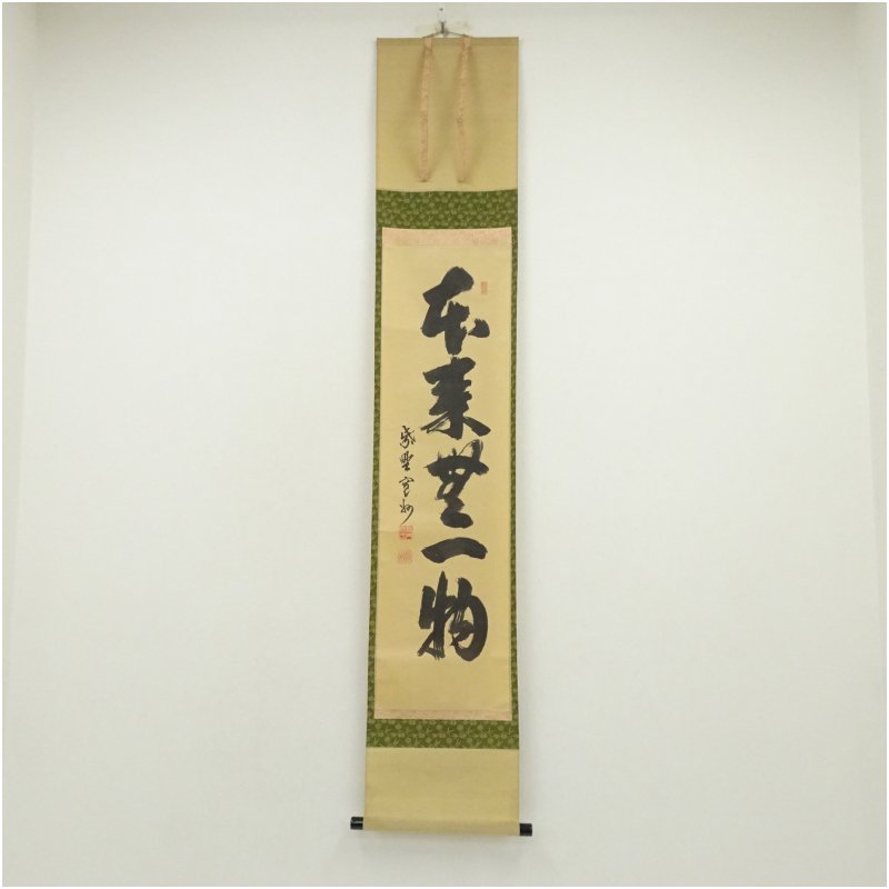 大徳寺 長谷川寛州筆 「本来無一物」一行書 肉筆紙本掛軸(共箱)