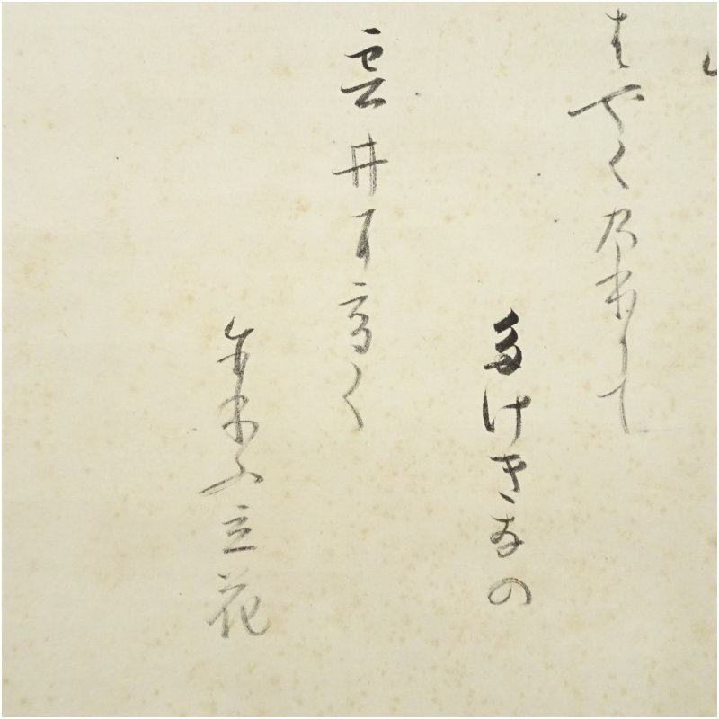表具:表面上部にごく薄いシミが少しあります。裏面全体に薄いシミがあります。