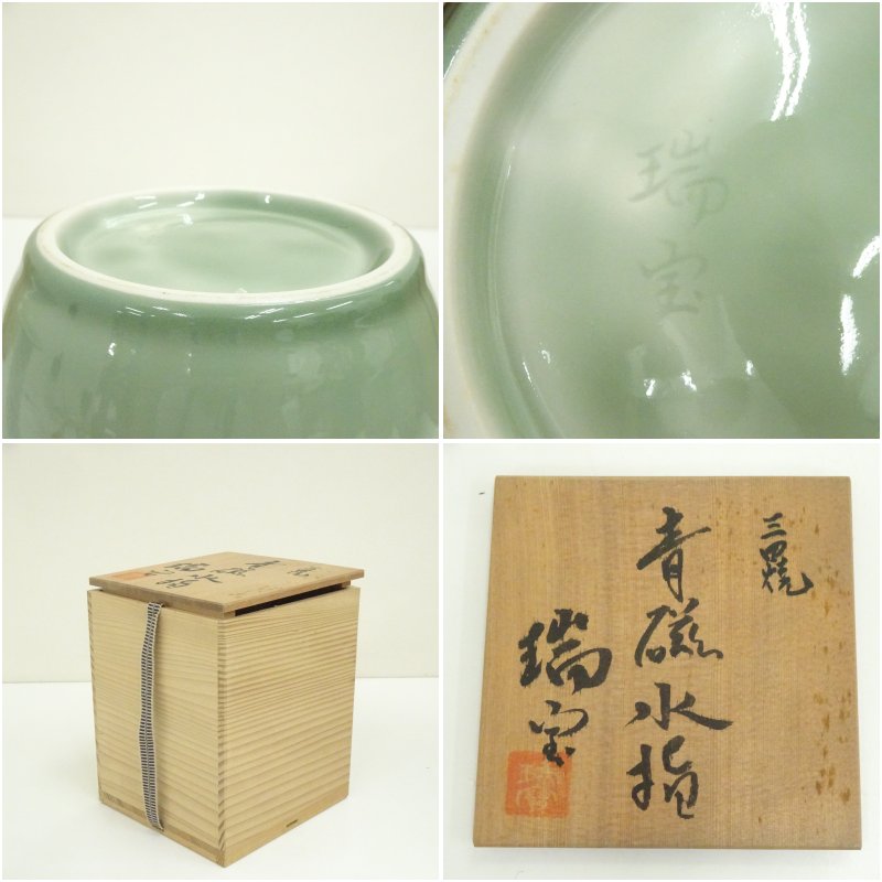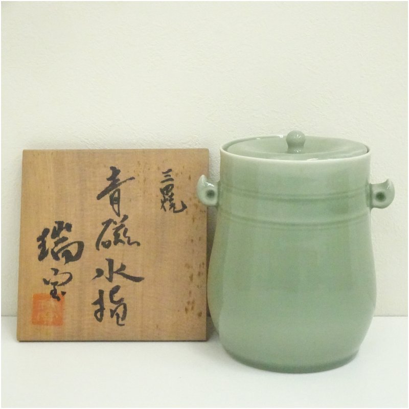 三田焼 瑞宝造 青磁水指(共箱)