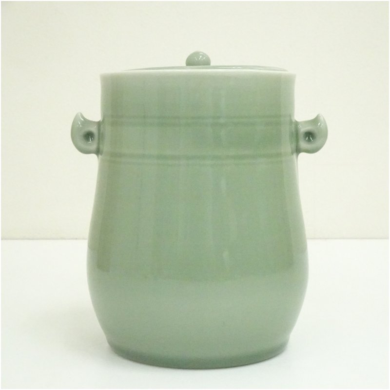 三田焼 瑞宝造 青磁水指(共箱) [13-250717c-046a]