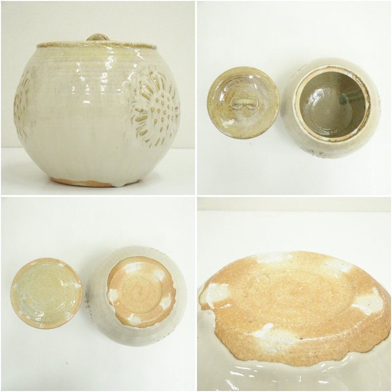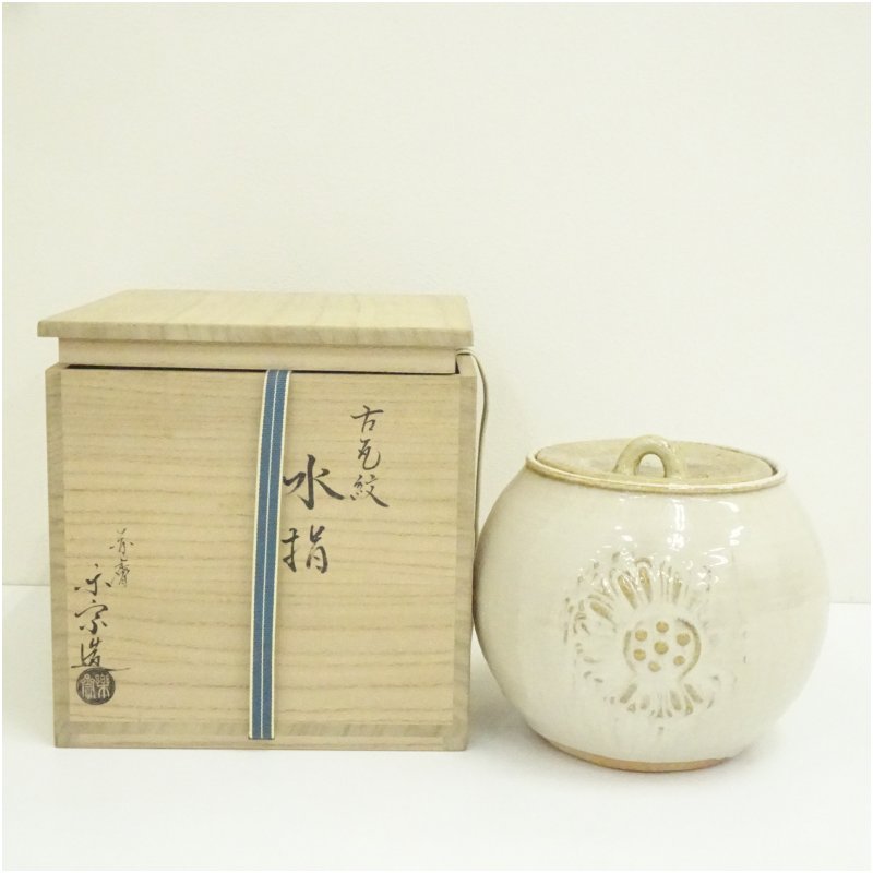 赤膚焼 尾西楽斎造 古瓦紋水指(共箱) [13-250718c-004a]