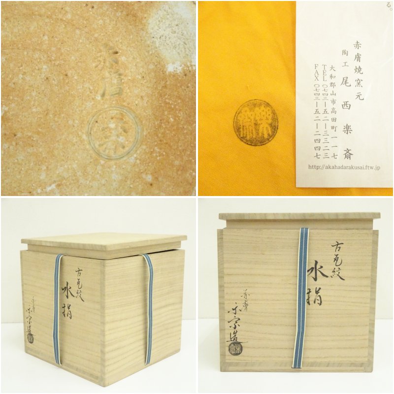 赤膚焼 尾西楽斎造 古瓦紋水指(共箱)