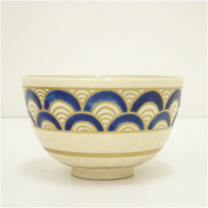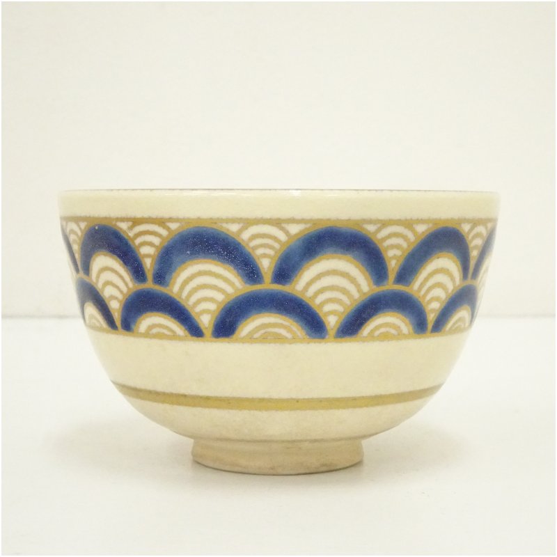 京焼 秋峰造 色絵青海波茶碗(保護箱) [13-250603c-012a]
