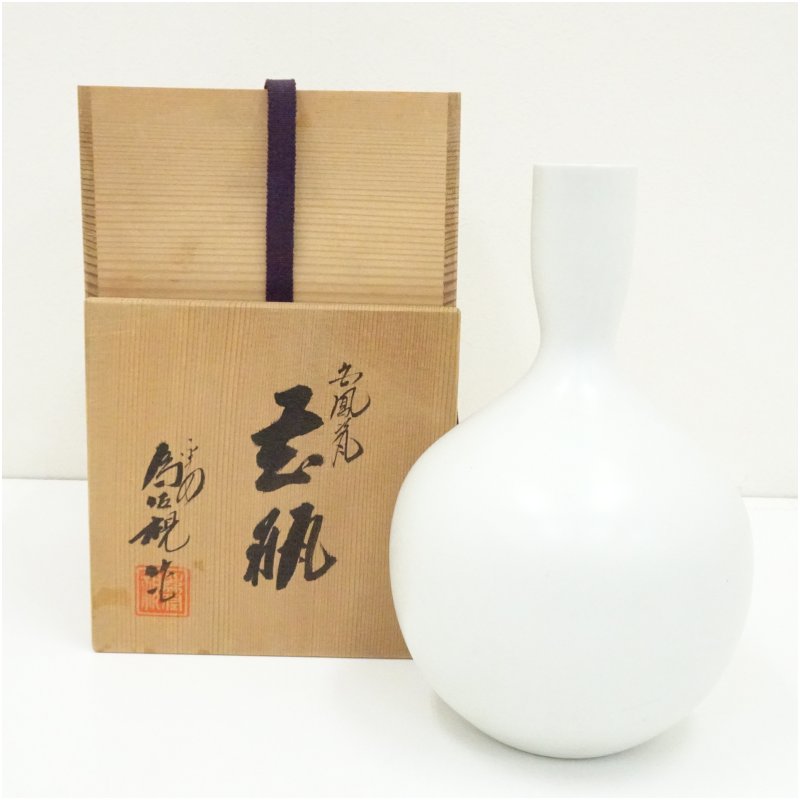 京焼 松本為佐視造 白鳳磁花瓶(共箱)