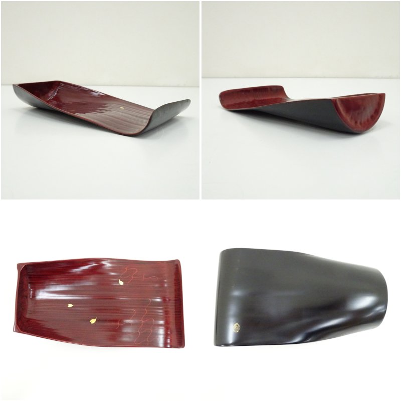 象彦造 溜塗竹銘々盆5客(箱付) [13-250718c-029a]