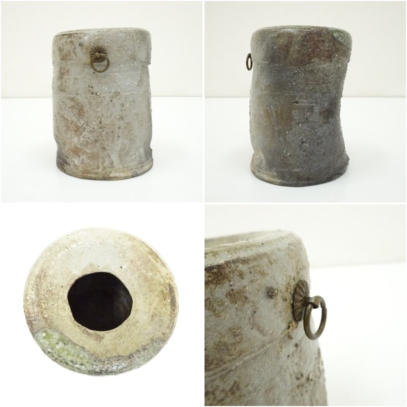 祝峰窯造 古伊賀風掛花生(共箱) [13-250718c-030a]