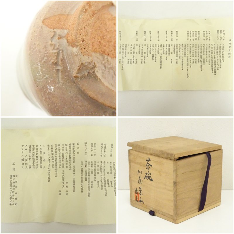加藤景山造 御本立鶴筒茶碗(共箱)