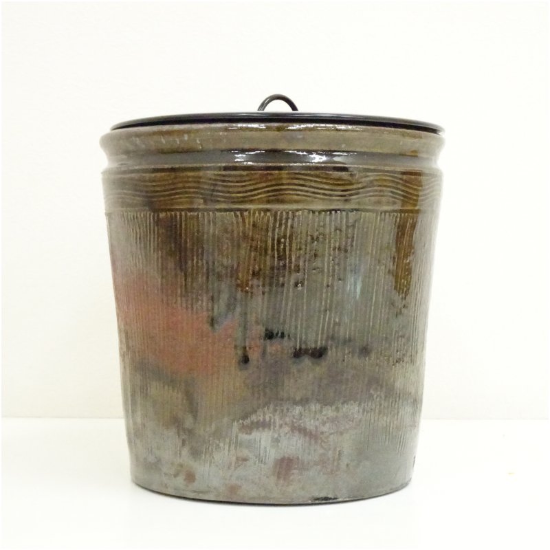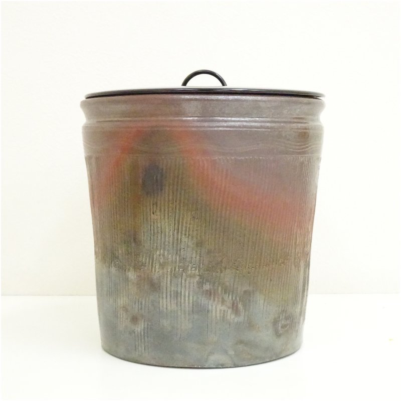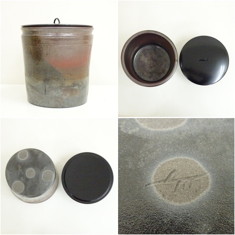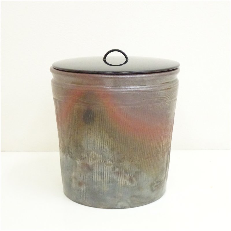 丹波焼 市野豊治造 窯変縄簾一重口水指(共箱)