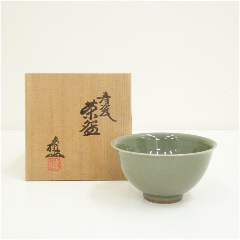 京焼 三代 諏訪蘇山造 青磁茶碗(共箱) [13-250718c-066a]