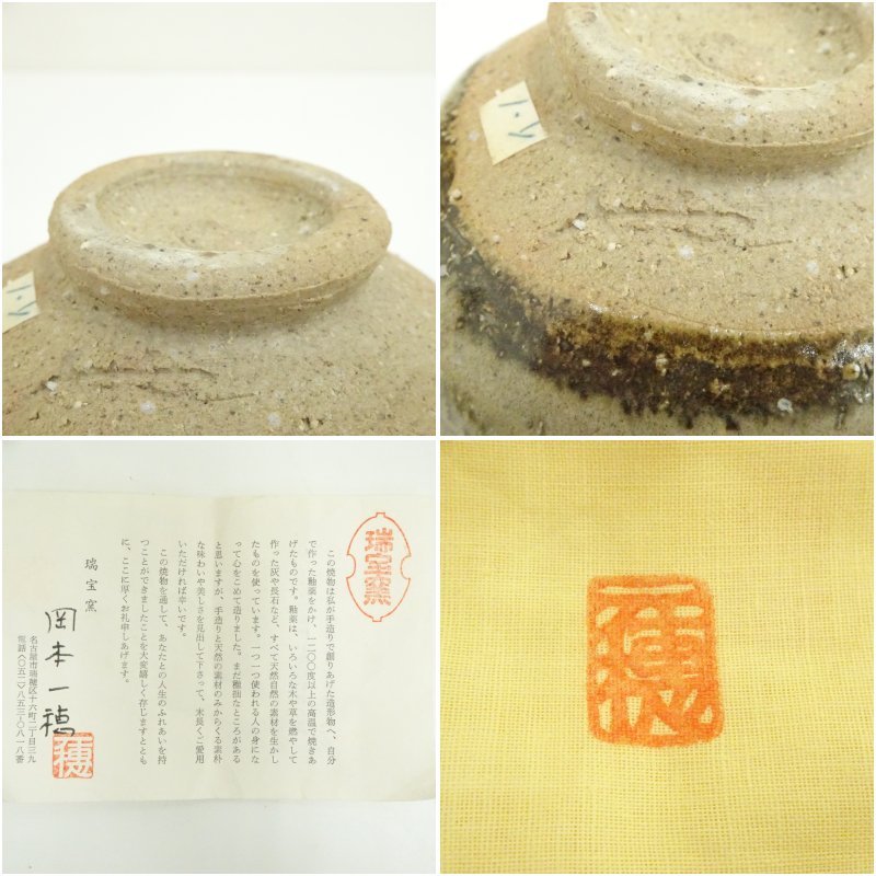 瑞宝窯 岡本一穂造 灰釉茶碗(共箱) [13-250722c-010a]