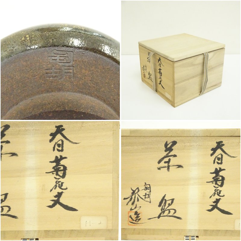 泰山造 天目菊花文茶碗(共箱) [13-250722c-015a]