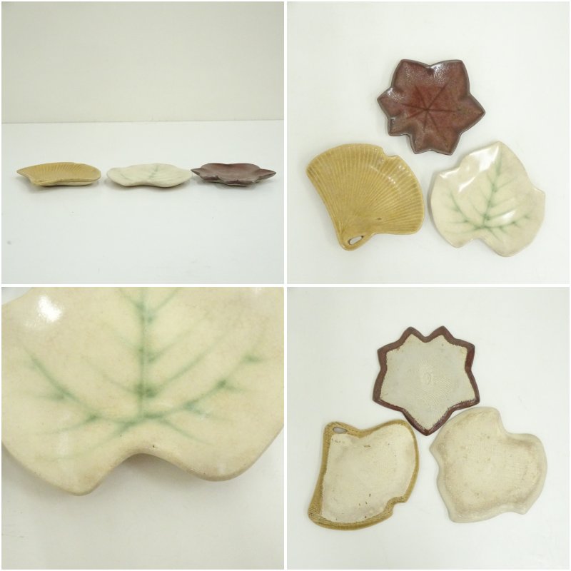 京焼 松斎造 吹き寄せ葉形小皿(共箱) [13-250722c-022a]