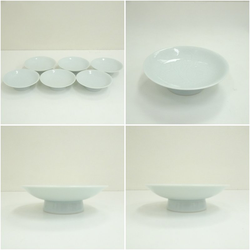 六峰造 白磁牡丹図彫刻果物(盛小皿)6客揃(共箱) [13-250722c-033a]