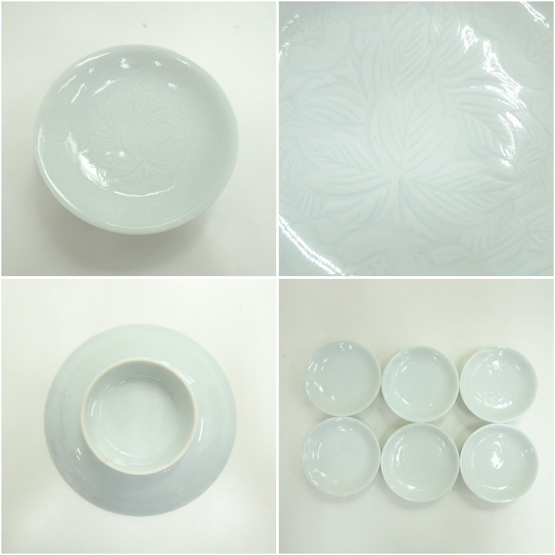 六峰造 白磁牡丹図彫刻果物(盛小皿)6客揃(共箱)