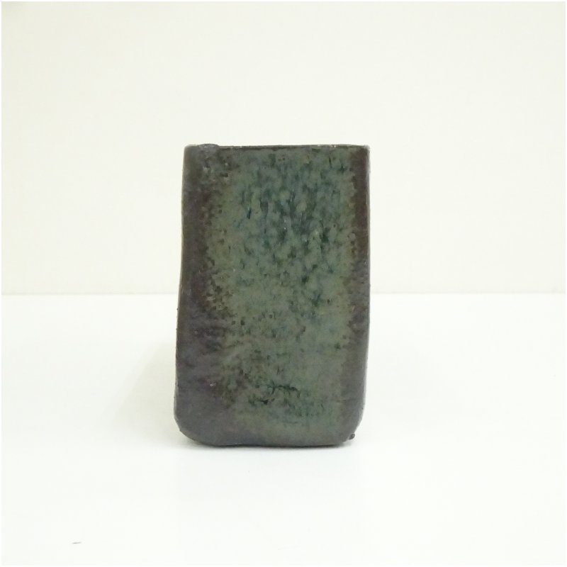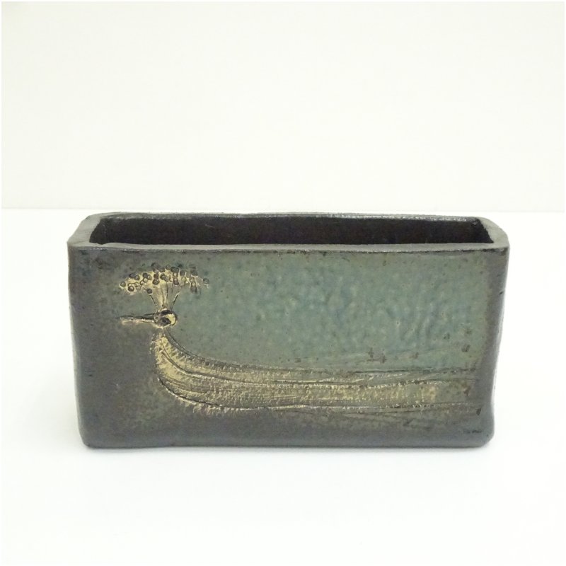 背戸窯 加藤釥造 蒼釉鳥文花瓶(共箱) [13-250722c-046a]