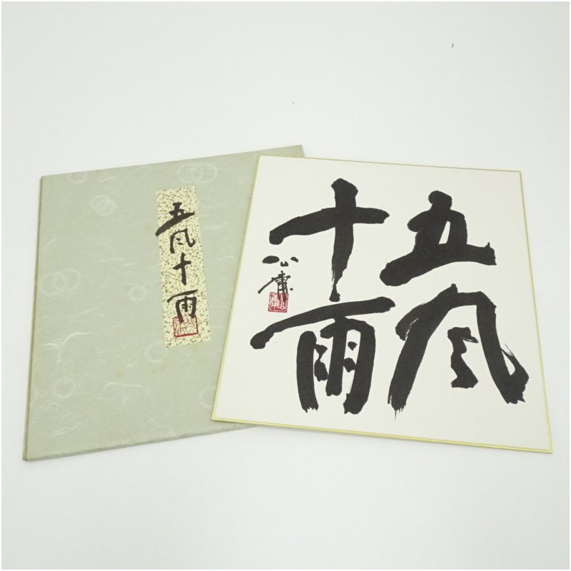 東大寺 清水公庸筆 「五風十雨」 肉筆色紙 [13-250722c-060a]
