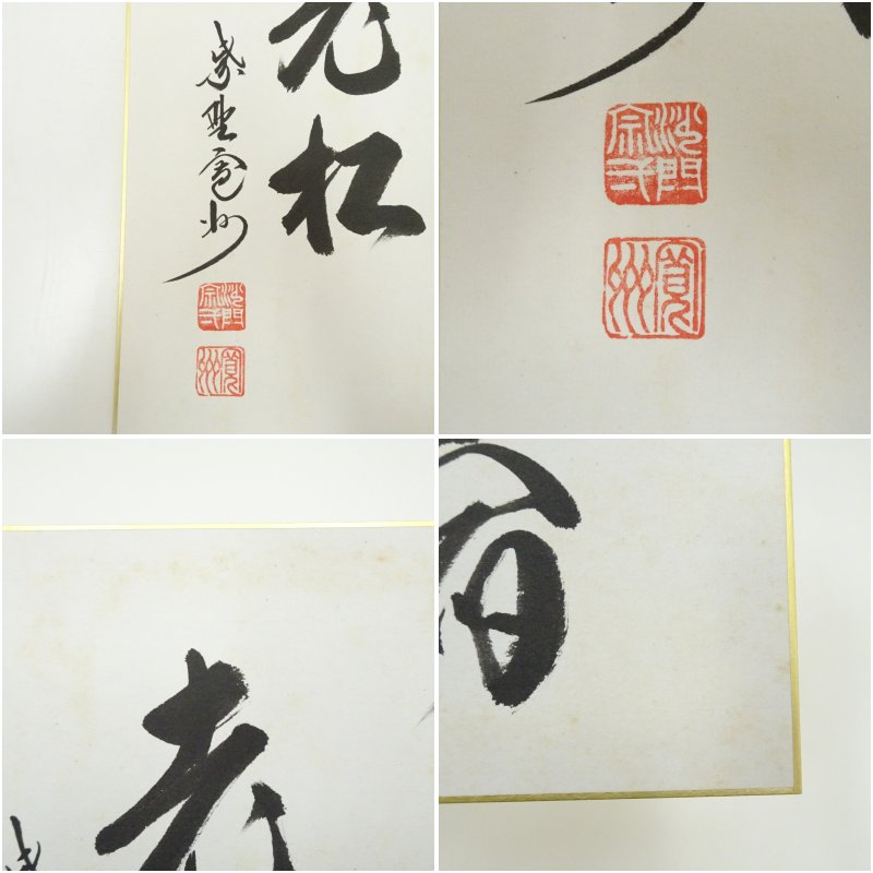 大徳寺 長谷川寛州筆 「直心是道場」「白鶴宿老松」 肉筆色紙2点 [13-250722c-067a]
