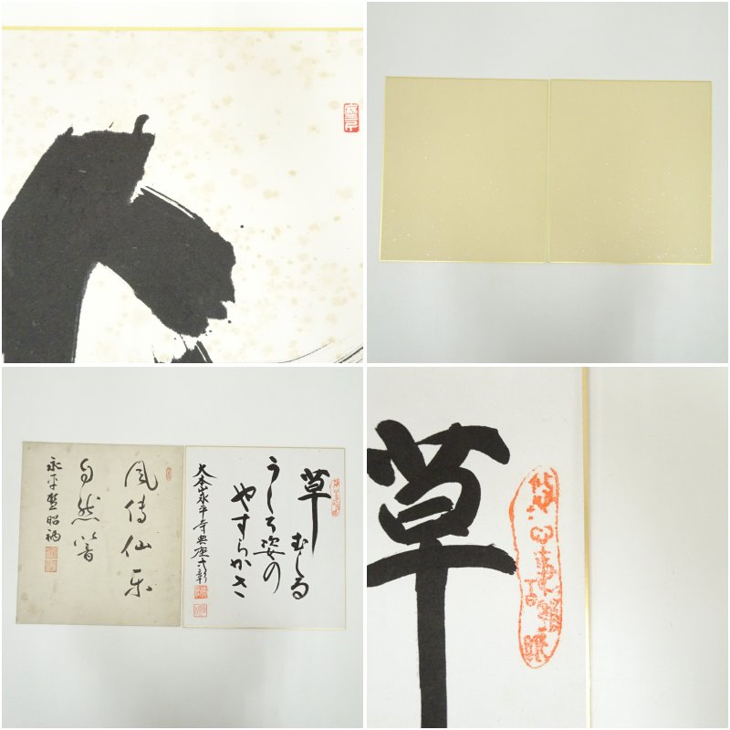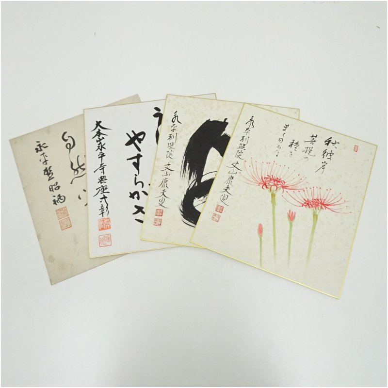 永平寺 秦慧昭筆 「風傳仙楽自然」・永平寺 丈山康夫筆 短歌など 肉筆色紙4点 [13-250722c-070b]