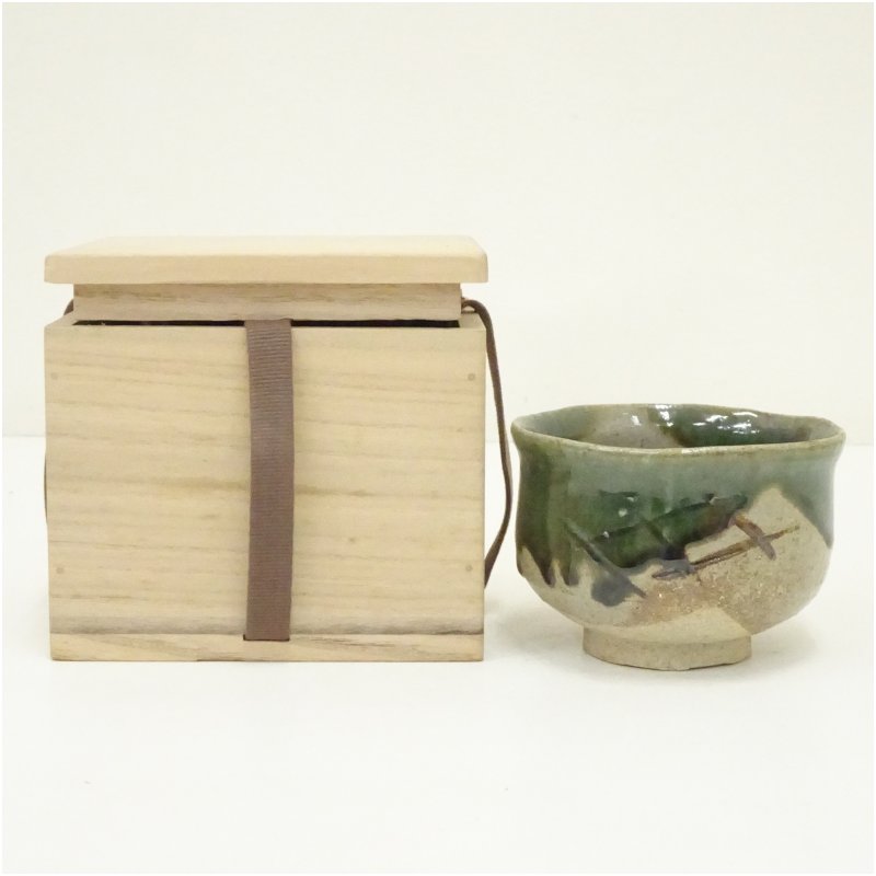 寺垣外窯 杉本貞光造 織部茶碗(共箱) [13-250722c-080a]