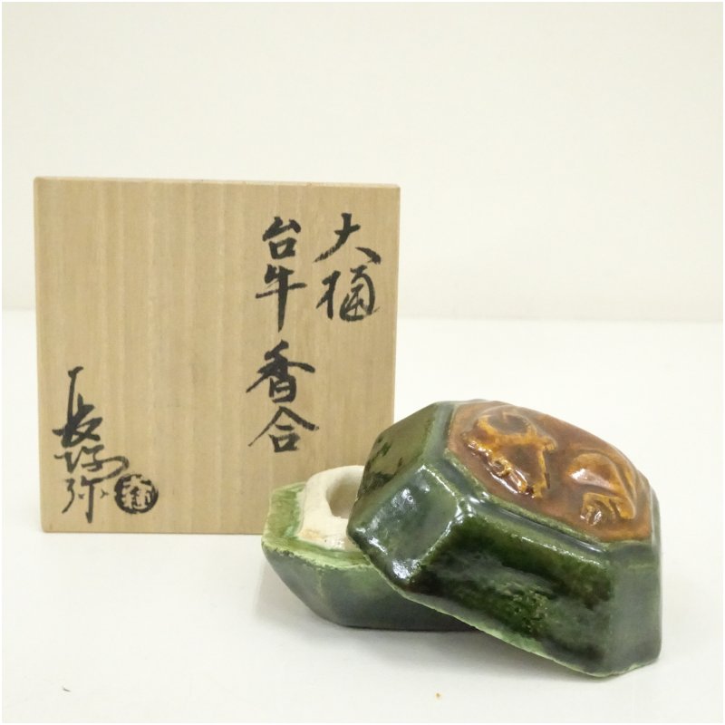 大樋焼 三代 大樋長阿弥(研仁)造 干支丑香合(共箱)
