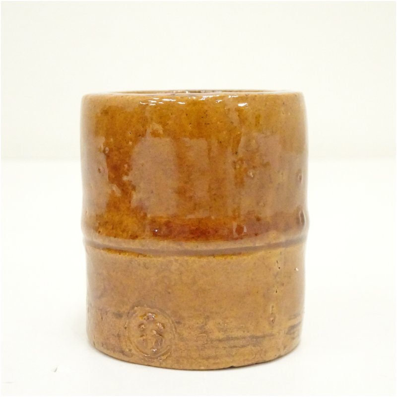 大樋焼 三代 大樋長阿弥(研仁)造 竹香合(共箱) [13-250722c-089a]