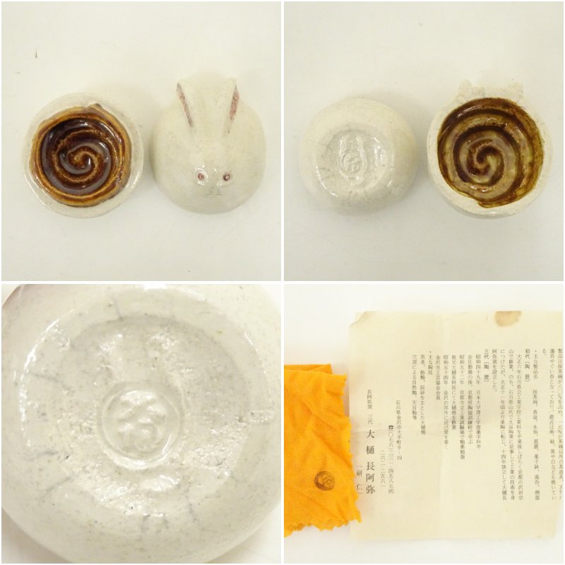 大樋焼 三代 大樋長阿弥(研仁)造 干支卯香合(共箱)