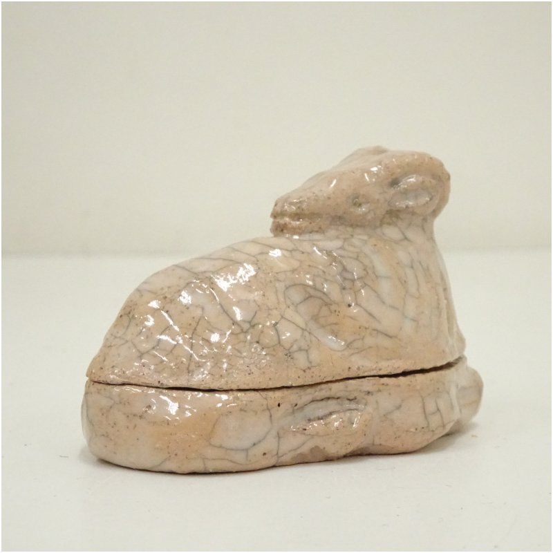 大樋焼 三代 大樋長阿弥(研仁)造 干支未香合(共箱) [13-250722c-096a]