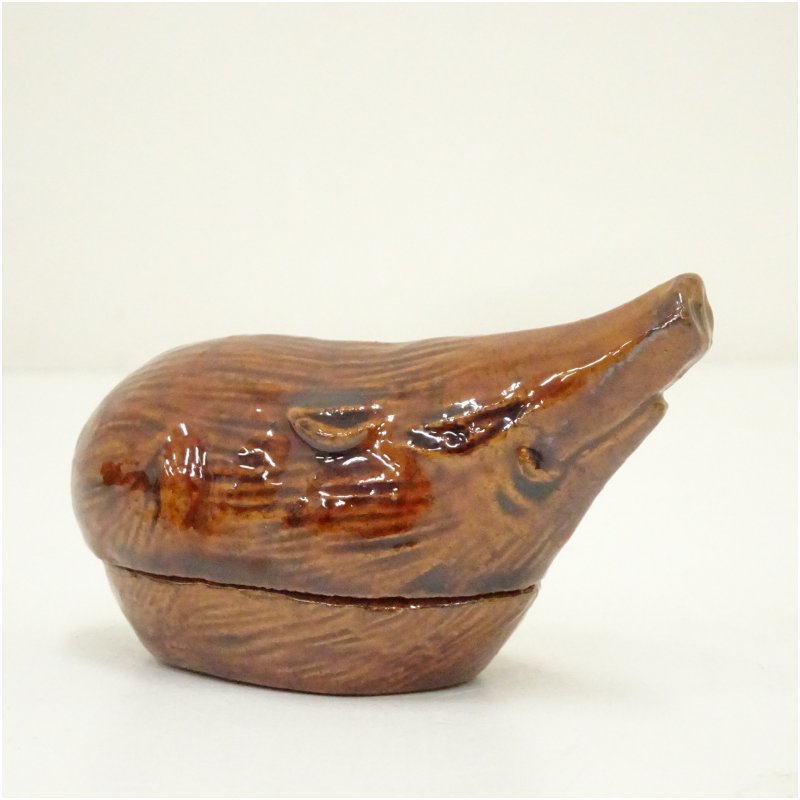 大樋焼 三代 大樋長阿弥(研仁)造 干支亥香合(共箱) [13-250722c-104a]