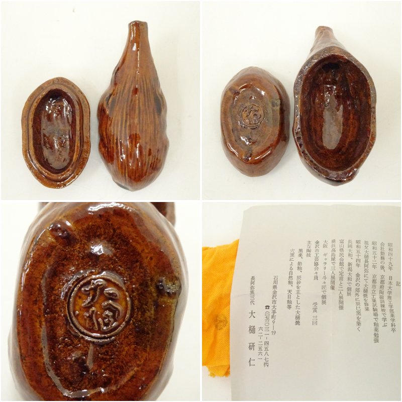 大樋焼 三代 大樋長阿弥(研仁)造 干支亥香合(共箱)