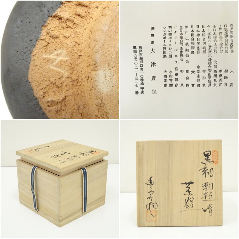 菱野窯 大津豊泉造 黒釉勅題晴茶碗(共箱)