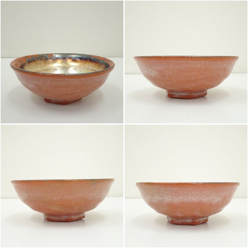 井上春峰造 赤楽蓬莱嶋台茶碗(共箱) [13-250723c-012a]