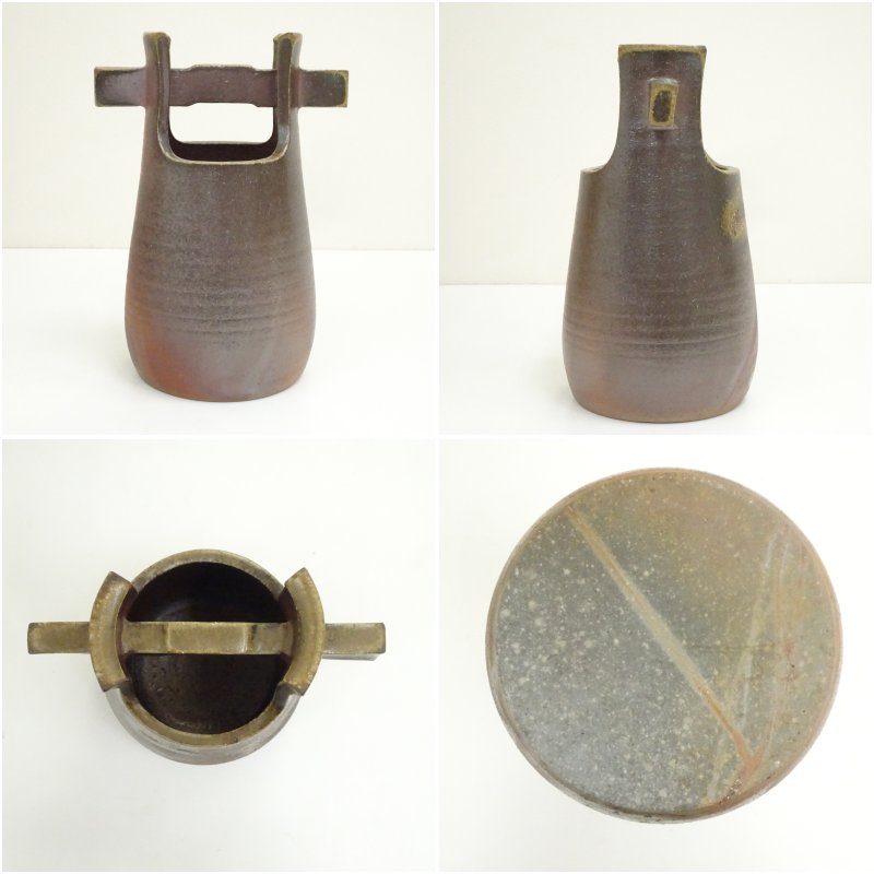 備前焼 大平一誠造 平桶花入(共箱) [13-250723c-043a]