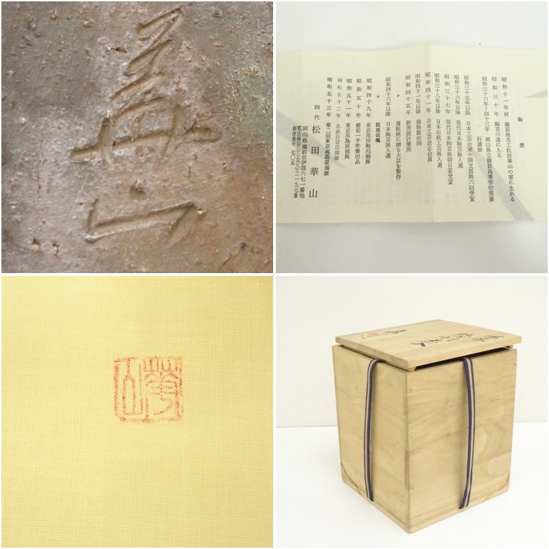 備前焼 松田華山造 徳利花入(共箱)