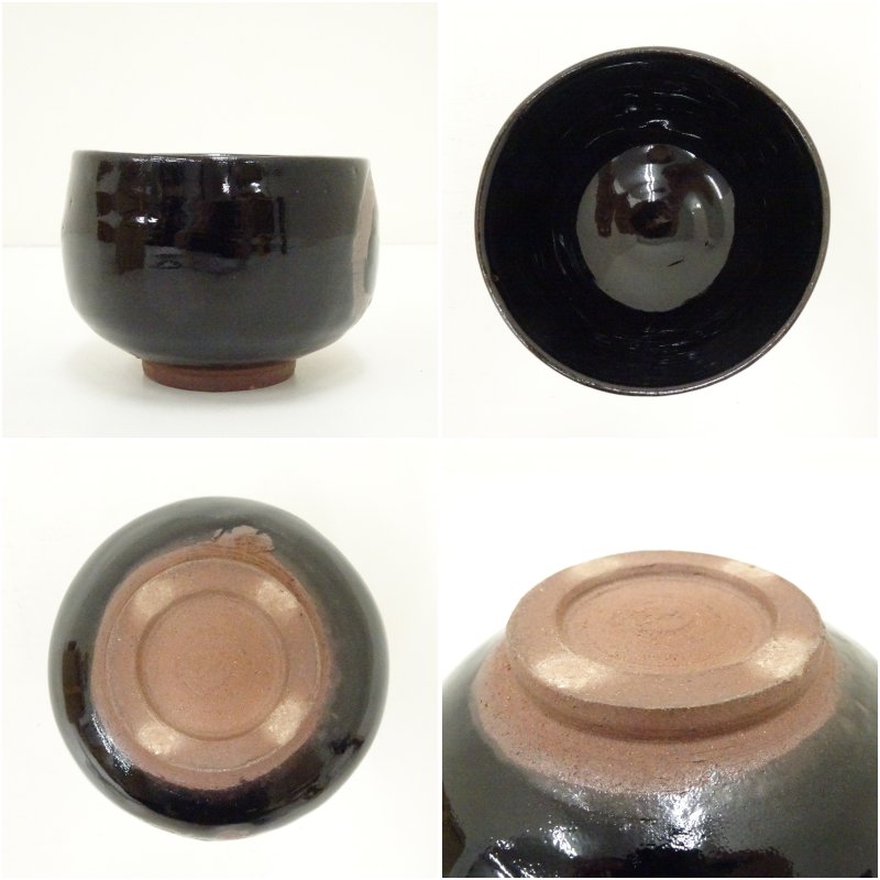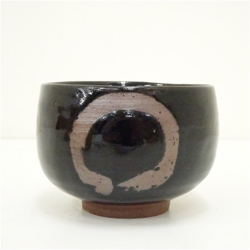 お泉水窯 越野達郎造 黒釉円相茶碗(共箱)