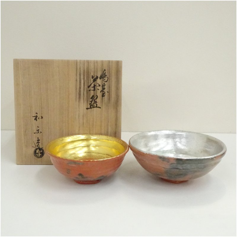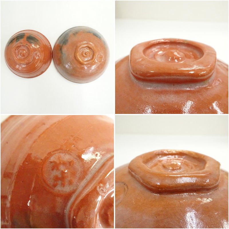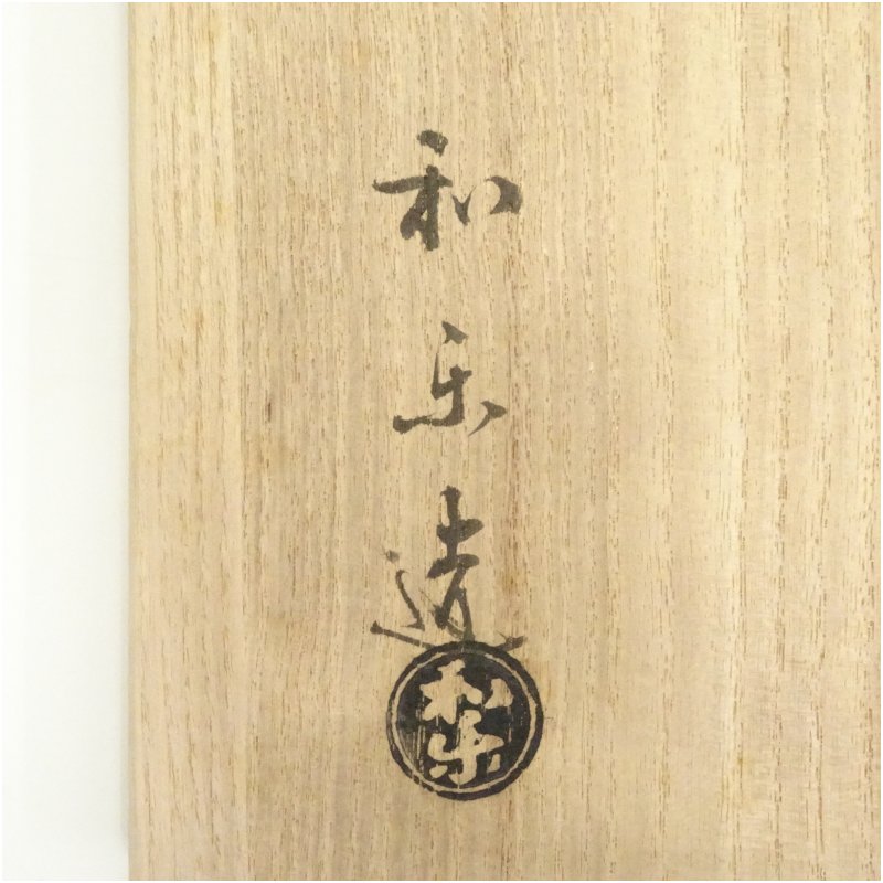 茶碗大小2点のうち、小は箱書通り川崎和楽の作品ですが、大は楽入銘となっており、中身が入れ替わっているものと思われます。