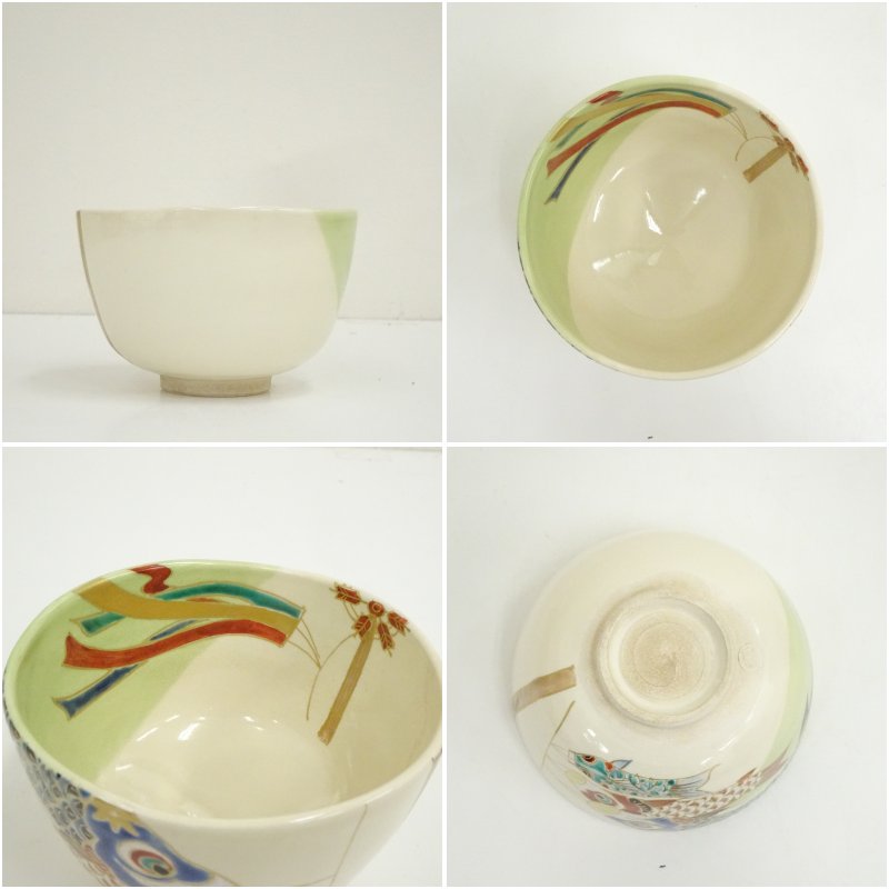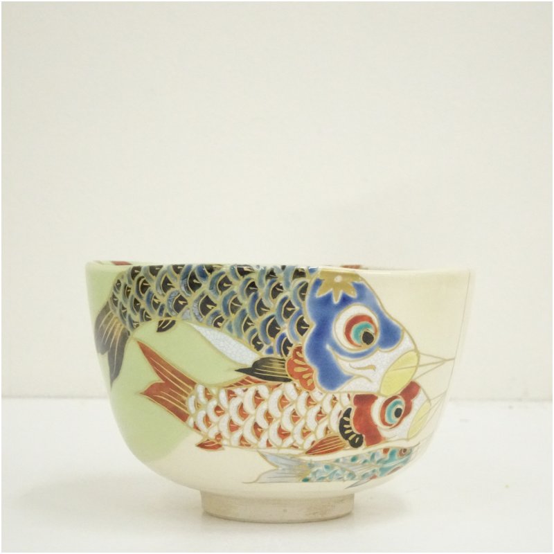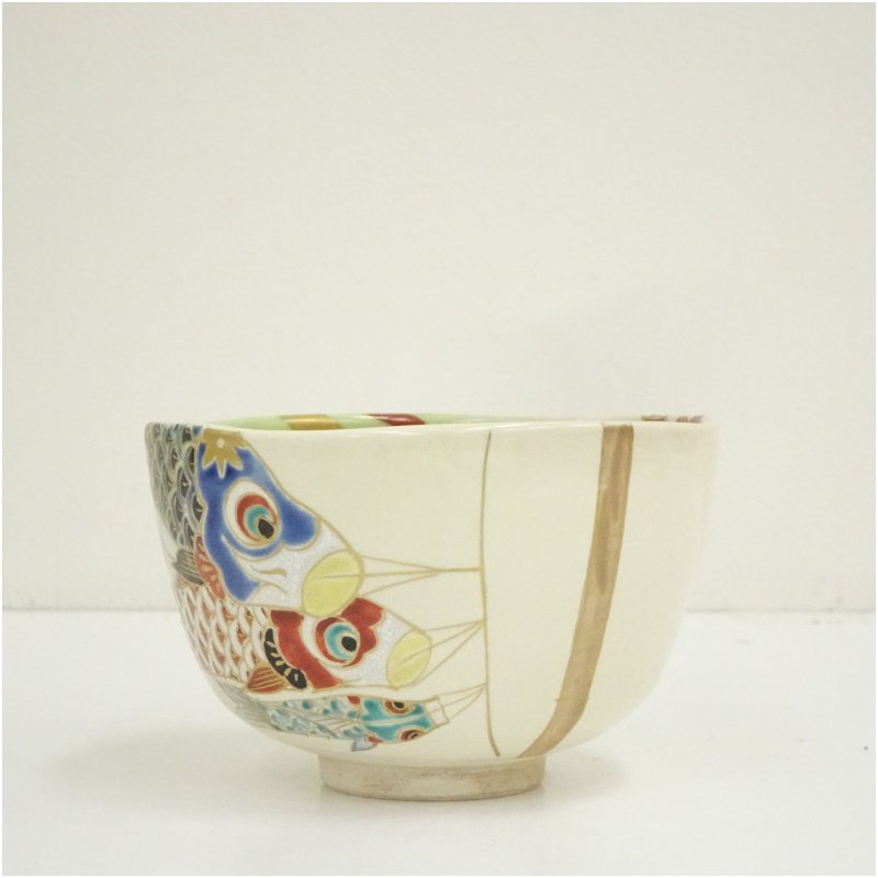京焼 森下秋彩造 色絵鯉のぼり茶碗(共箱) [13-250723c-101a]