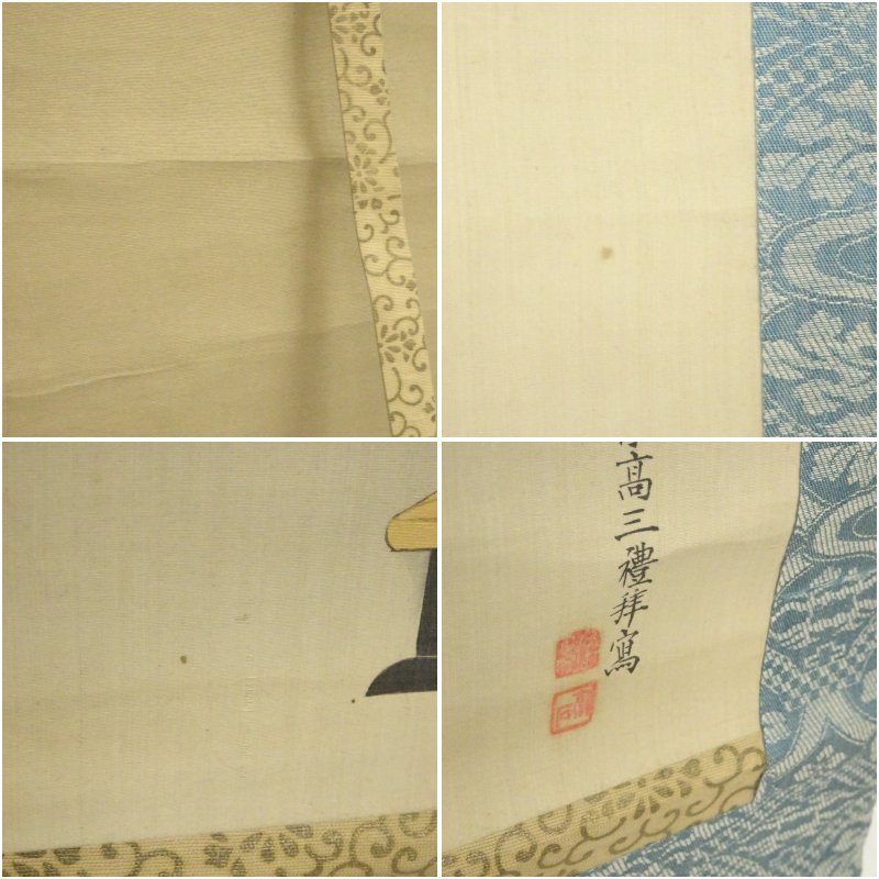 表具:表面に折れがあり、上部に虫食いが数点あります。裏面八双とその付近に、経年による劣化と汚れがあります。