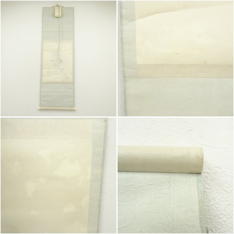 本紙と表具両面に、全体的にシミ、折れ、擦れなどがあります。