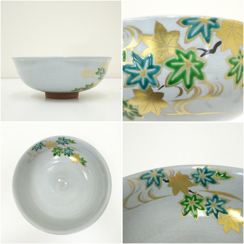 作家物 色絵紅葉流し茶碗(箱付) [01-250725c-052a]