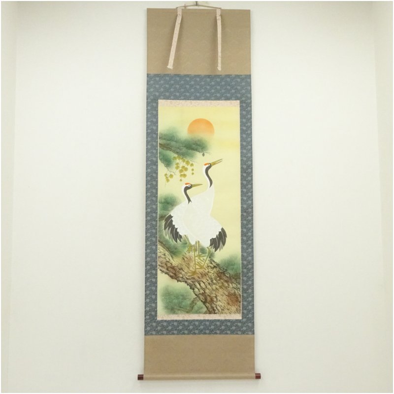 道信筆 松上双鶴 肉筆絹本掛軸(共箱) [01-250725c-072a]