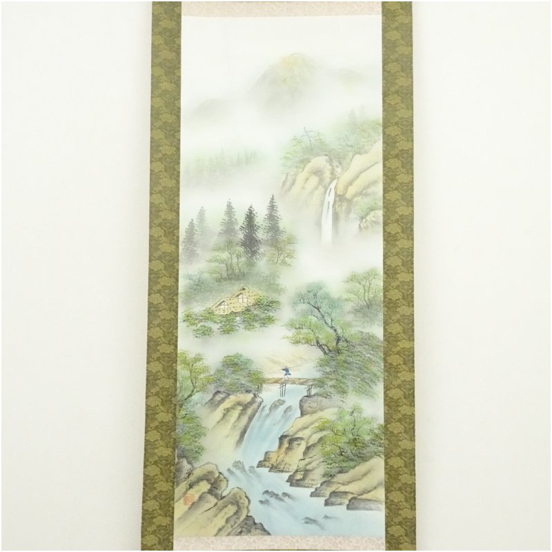 常信筆 彩色山水 肉筆絹本掛軸(共箱) [01-250725c-073a]